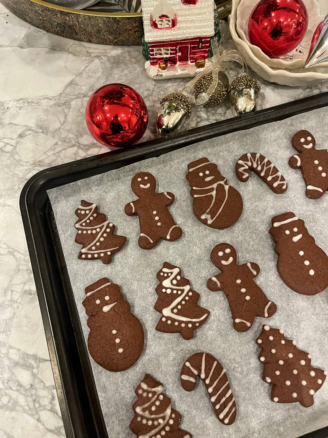 Si vous n'êtes pas fan de glaçage sucré, vous pouvez faire fondre du chocolat au bain marie et tremper par exemple les bras des bonhommes de pain d'épice puis faire ensuite sécher sur une plaque sulfurisée.